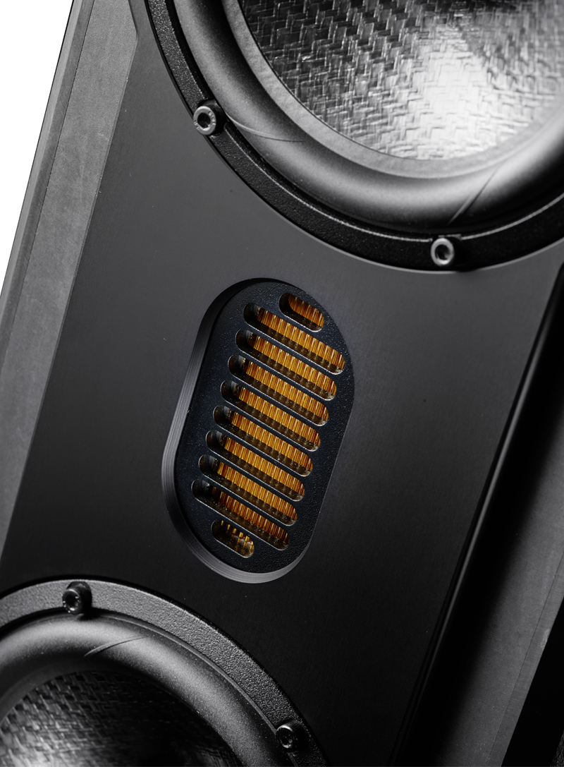 | Zasada działania | Obudowa typu bass-reflex z wylotem skierowanym w dół, dostępna również w wersji z wylotem skierowanym w przód lub w tył |